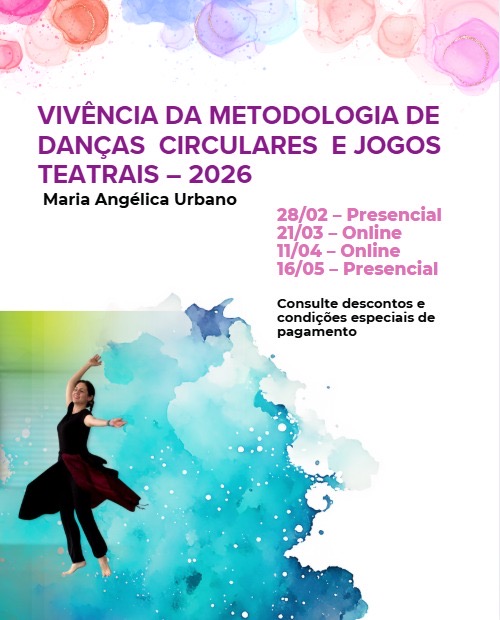 Um Repertório de Danças Circulares para Comemorações e Festas Este curso foi especialmente criado para educadores, artistas, facilitadores e pessoas que trabalham com crianças e desejam enriquecer seus momentos comemorativos com a alegria, a beleza e o sentido coletivo das Danças Circulares. Aqui, celebramos o poder de dançar juntos, de mãos dadas, em roda, em conexão, trazendo à infância experiências de harmonia, ludicidade e pertencimento. Ao longo do curso, você conhecerá um repertório cuidadosamente selecionado de danças circulares que podem ser vivenciadas em diferentes comemorações: festas da escola, celebrações sazonais, datas especiais, eventos culturais e encontros comunitários. Incrição: https://docs.google.com/forms/d/e/1FAIpQLScfWJ1I6XEMF-LrNj6g2GabPzs7_xfJ20Fk-uLw2cex8hMShQ/viewform?usp=dialog