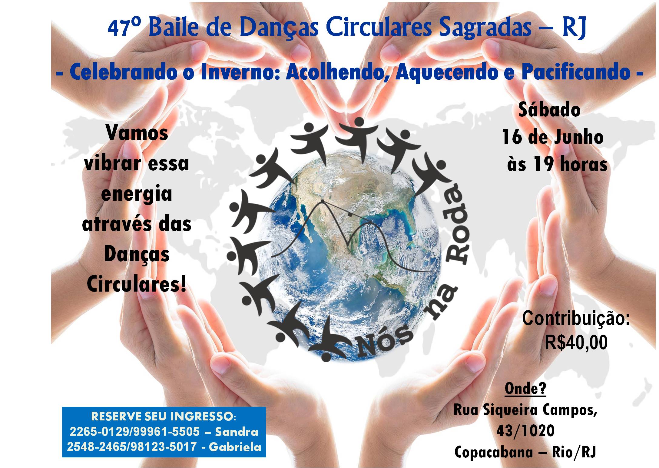 Dançar em roda é uma das práticas mais antigas da humanidade. As Danças Circulares Sagradas, ou Danças dos Povos, resgatam essa prática ancestral que através de músicas e danças dos diversos povos e regiões, nos proporciona momentos de verdadeira presença e conexão com nossa essência. Nessa noite, nosso convite e nossa intenção é para que estejamos atentos para que todos os nossos passos sejam guiados por nosso coração... Não é necessário ter experiência para participar! Sejam bem vindos! Quinta - 14/06 Das 19:00 às 21:00 Contribuição: R$40 Vagas: 12 Local: Espaço Rosa Vento Rua Capitão Salomão, 63 - 3° andar - Humaitá Inscrições pelo link: bit.ly/dancacircularrosavento informações: tsteiman@gmail.com ou 99733-5040