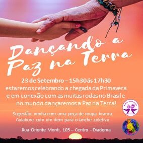 O Programa Mulheres em Movimento pertence à Secretaria de Esportes e Lazer da Prefeitura Municipal de Diadema e realiza uma Roda Aberta Mensal Temática...nesse mês irá celebrar a chegada da Primavera e irá se conectar com as diversas Rodas do Brasil e do Mundo dançando pela Paz na Terra...