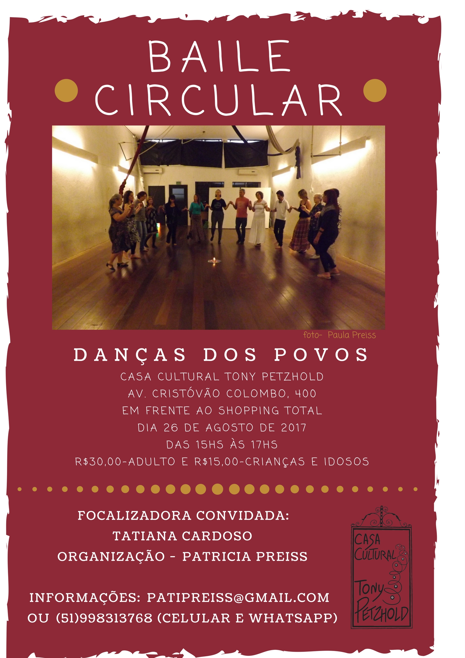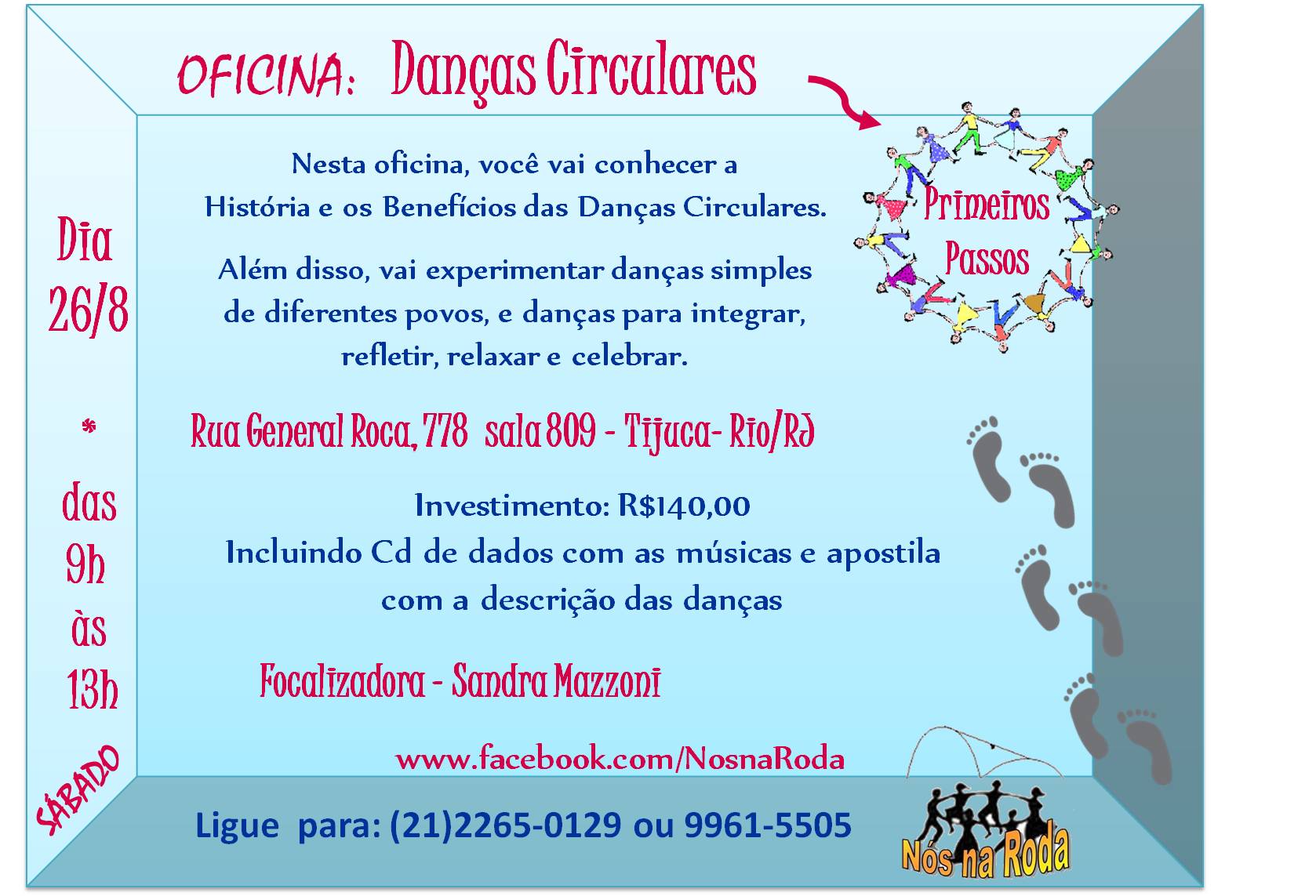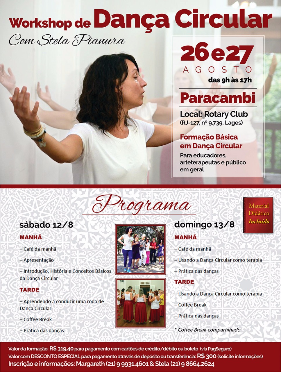 Um convite para quem deseja ampliar sua vivência e compreensão das Danças Circulares, como simples amante das rodas, ou/e também como busca de aprimoramento pessoal aliado ao desenvolvimento da prática profissional, no sentido do compartilhar das Danças Circulares com consciência e responsabilidade
