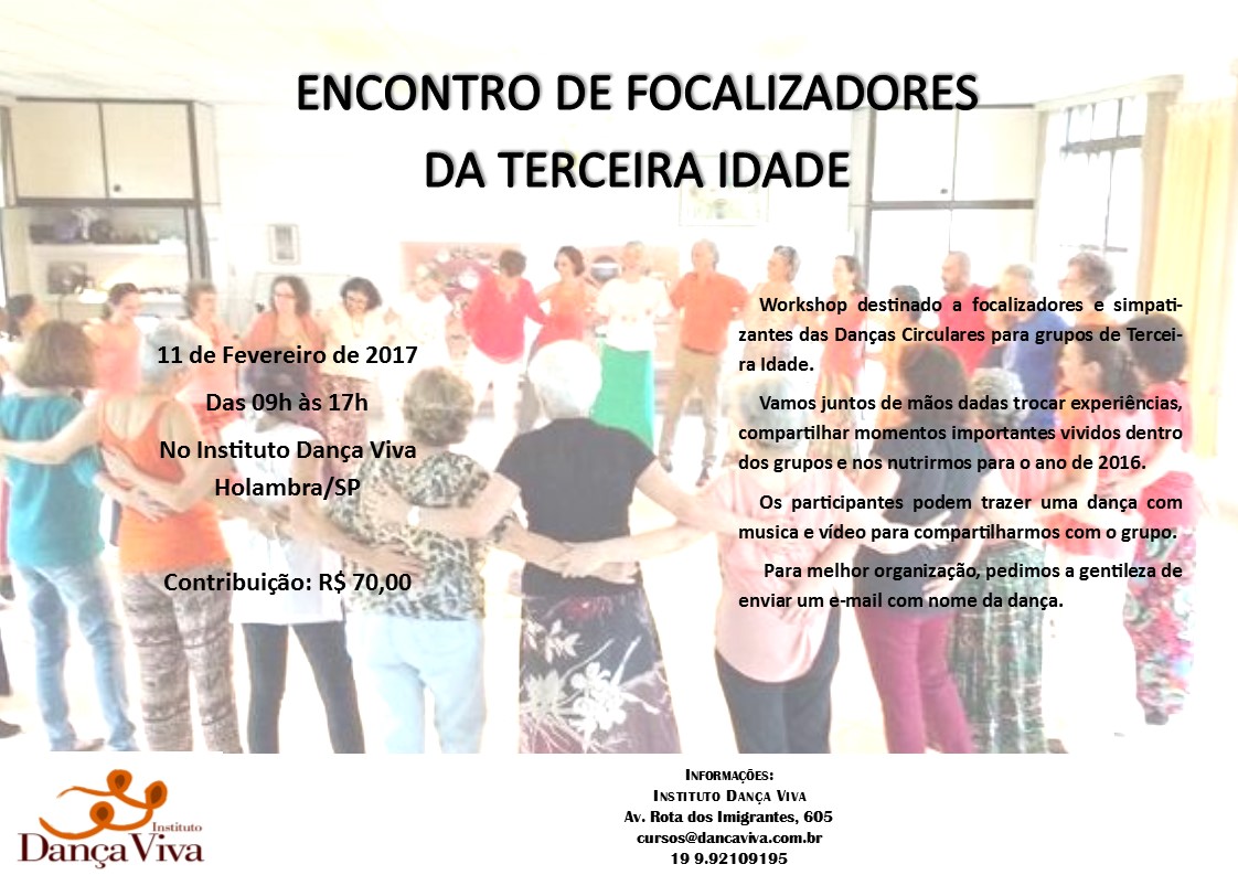5ª Oficina de Danças Circulares em Florianópolis com Luis Henrique Garcia Dia: 04 de fevereiro/17 - das 09:00 às 18:00 Local: Observatório Caminho do Meio - Estrada Antonio Damasco, 3354 (Ratones). Valor: 195,00 por pessoa. Inscrições em duplas: R$ 180,00 por pessoa Inclui: WS + almoço + dvd + cd