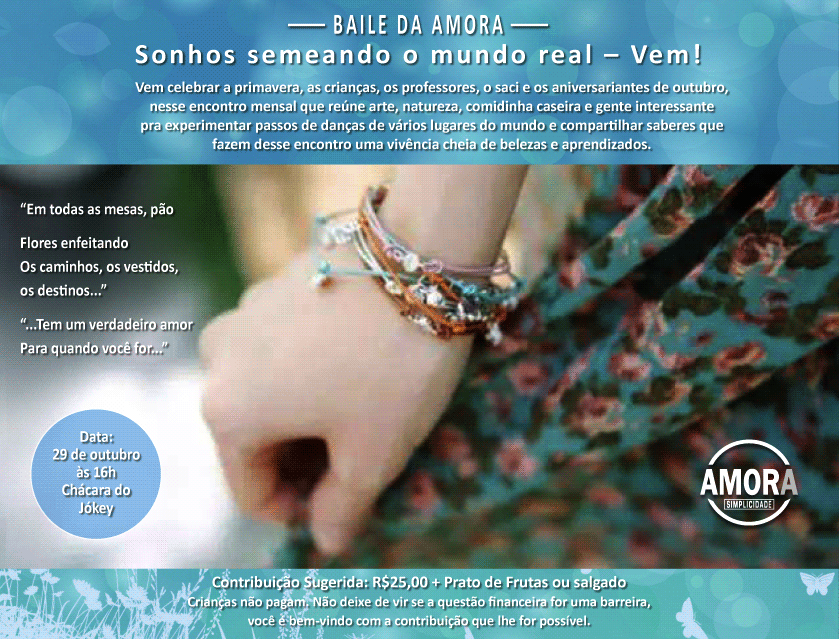 Em todas as mesas, pão. Flores enfeitando, os caminhos, os vestidos, os destinos... E esta canção. Tem um verdadeiro amor Para quando você for... Vem!! Traz a família e os amigos! Todo mês tem bolo pra celebrar os aniversariantes do mês e brindar o novo ciclo que se abre! Vem!