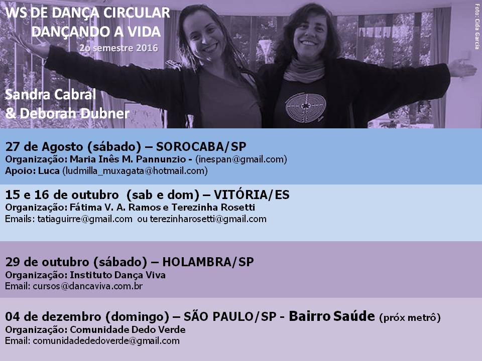 Sandra Cabral e Deborah Dubner expandem sua parceria dançante, oferecendo um curso inédito para quem quer exercitar os primeiros passos da focalização. Um curso de 24 horas (3 sábados)