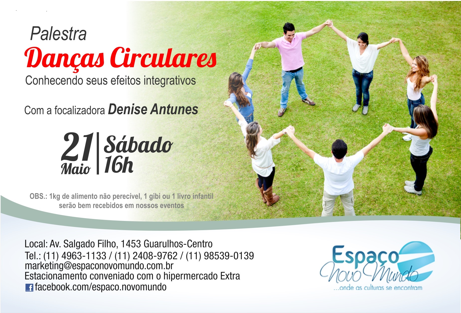 A palestra versará sobre a origem, raízes e expansão das danças circulares sagradas, além de abordar os aspectos integrativos e terapêuticos dos praticantes desta modalidade.
